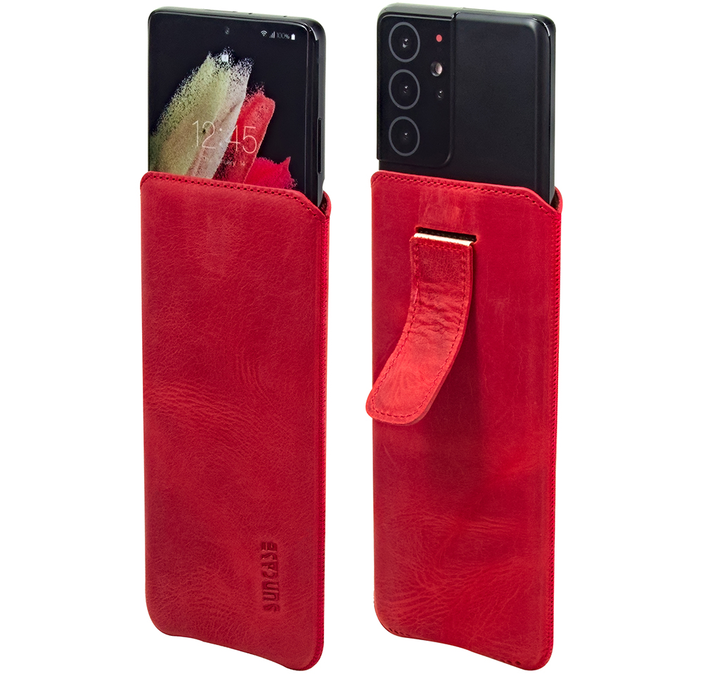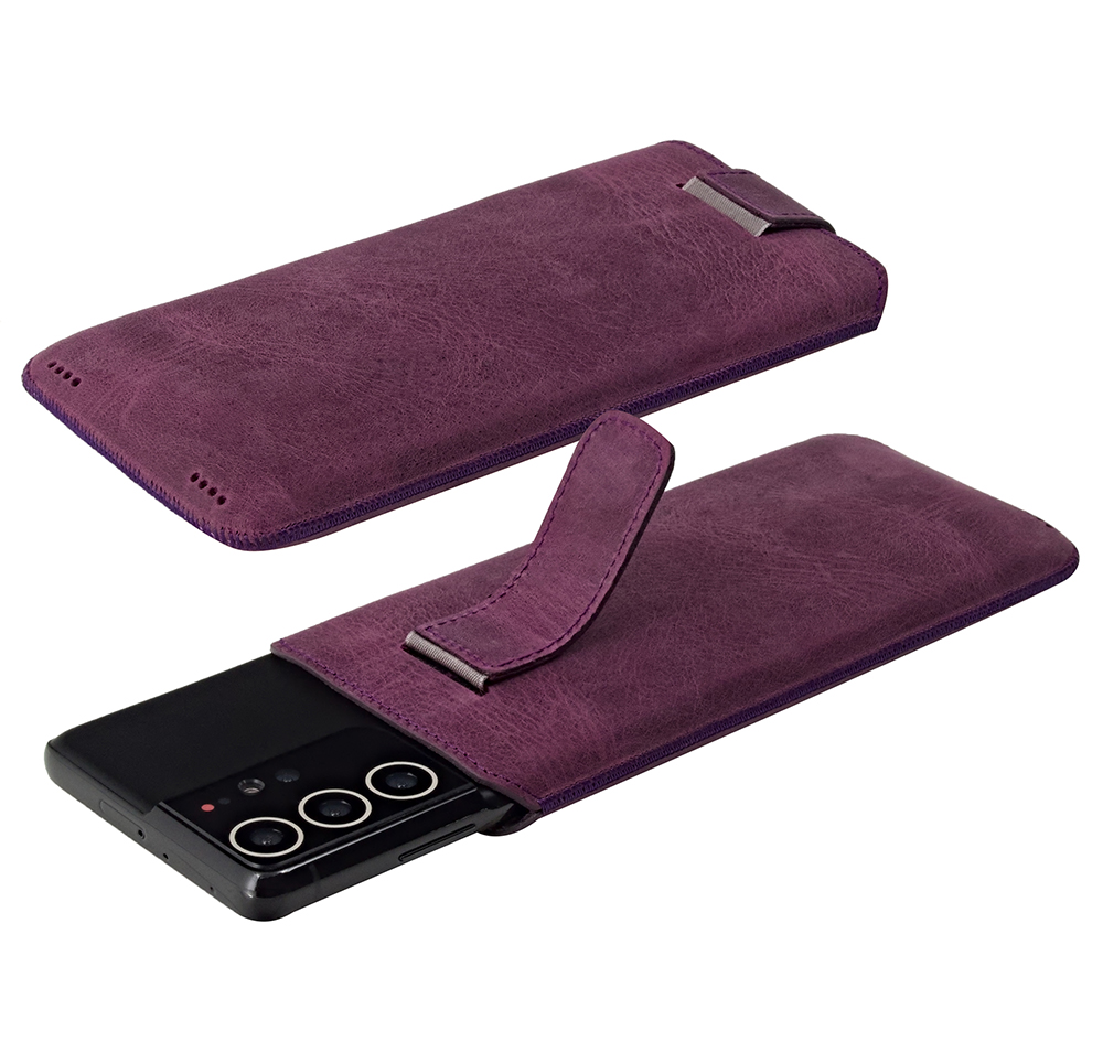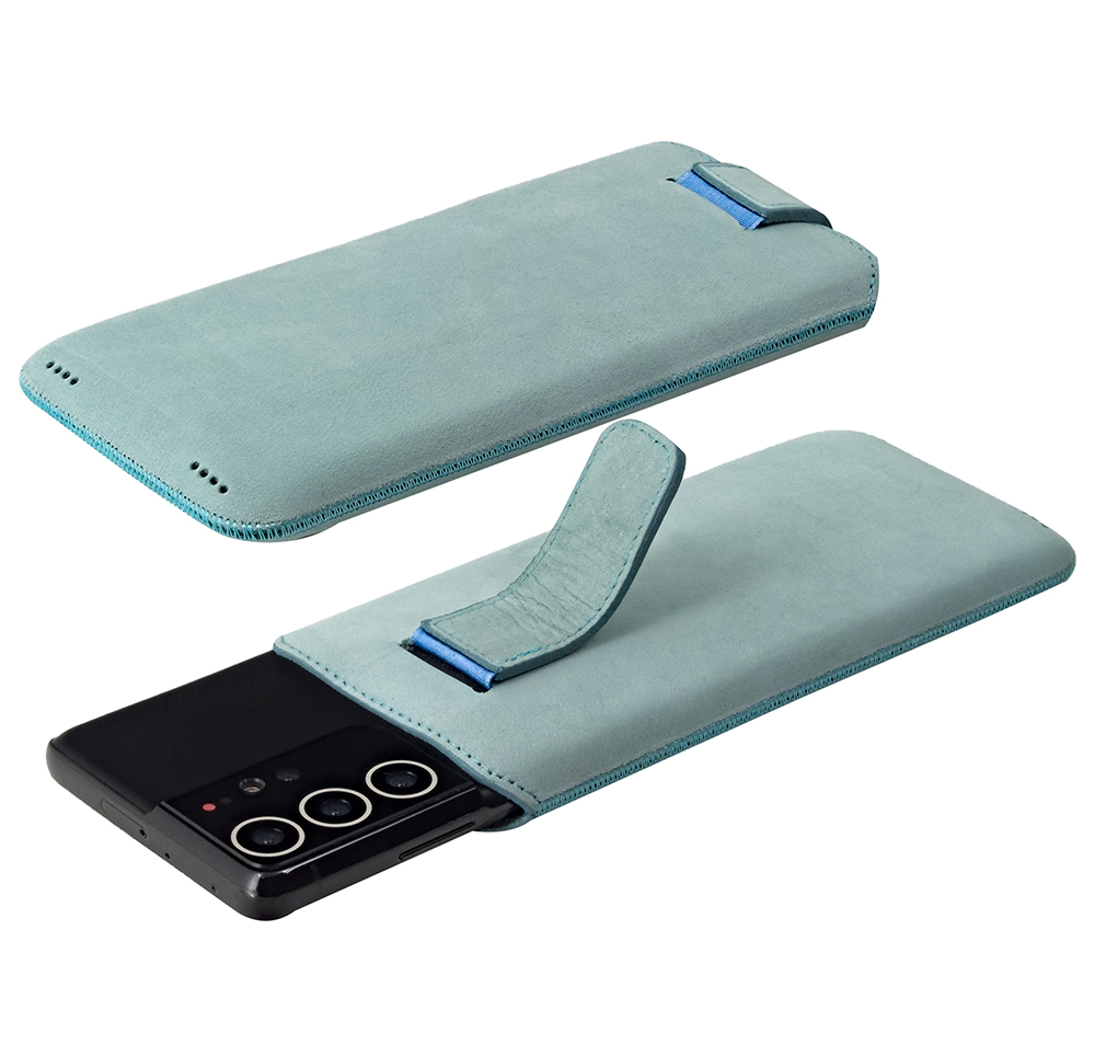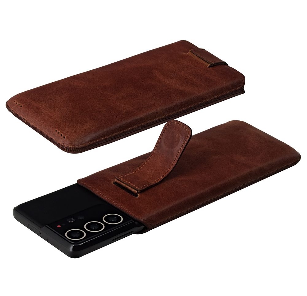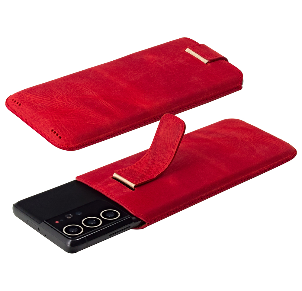 - Mithilfe der Lasche lässt sich das Handy bequem aus der Tasche herausziehen.