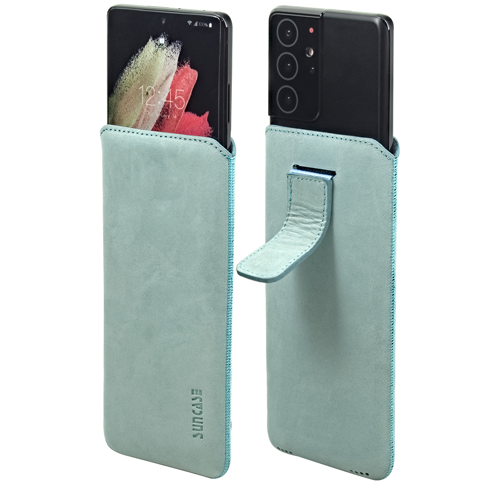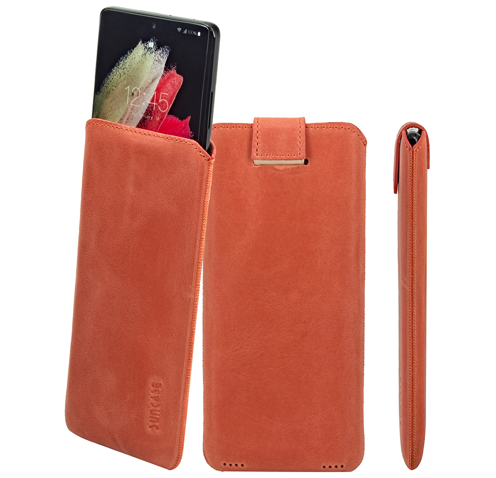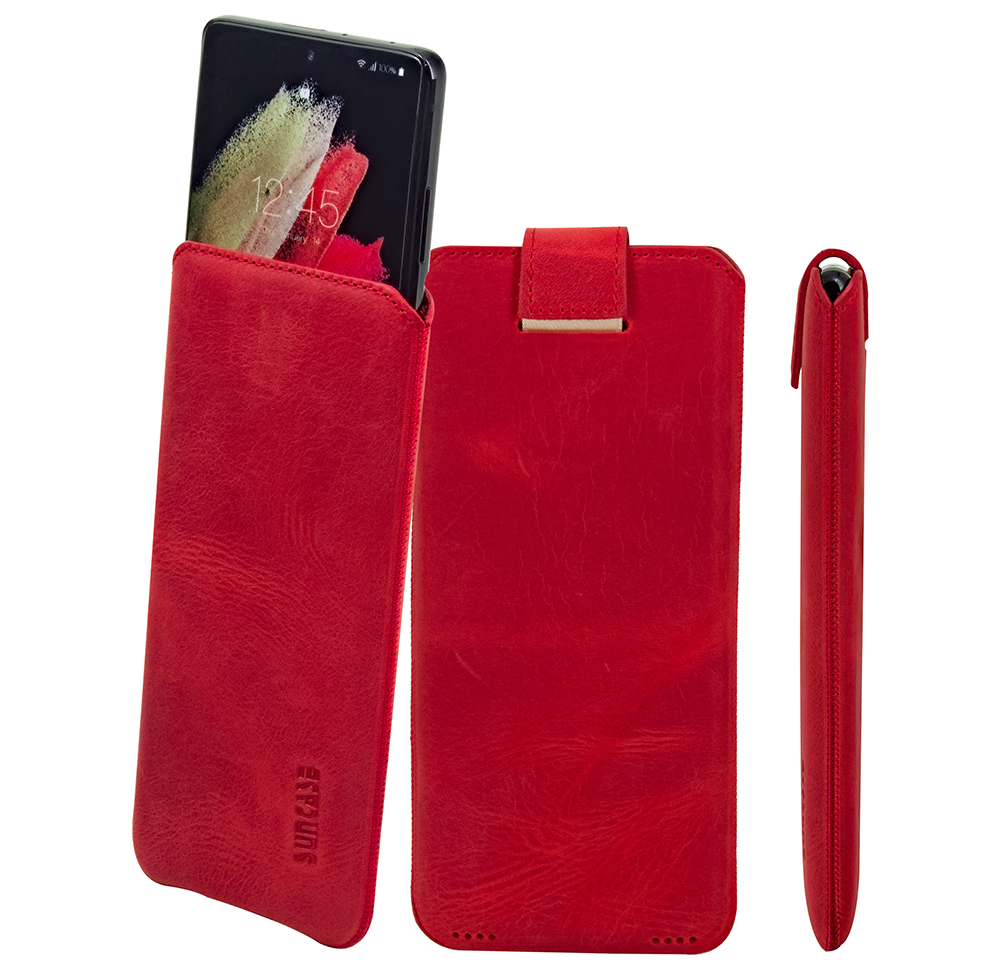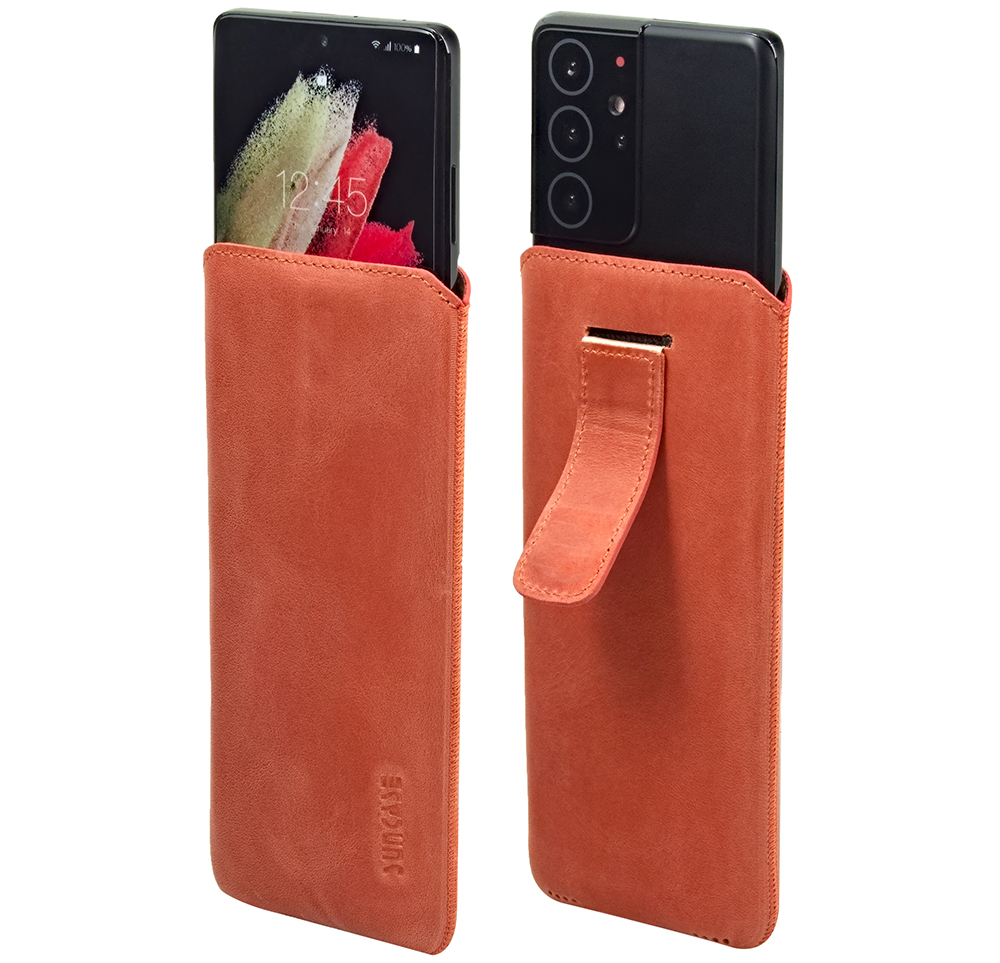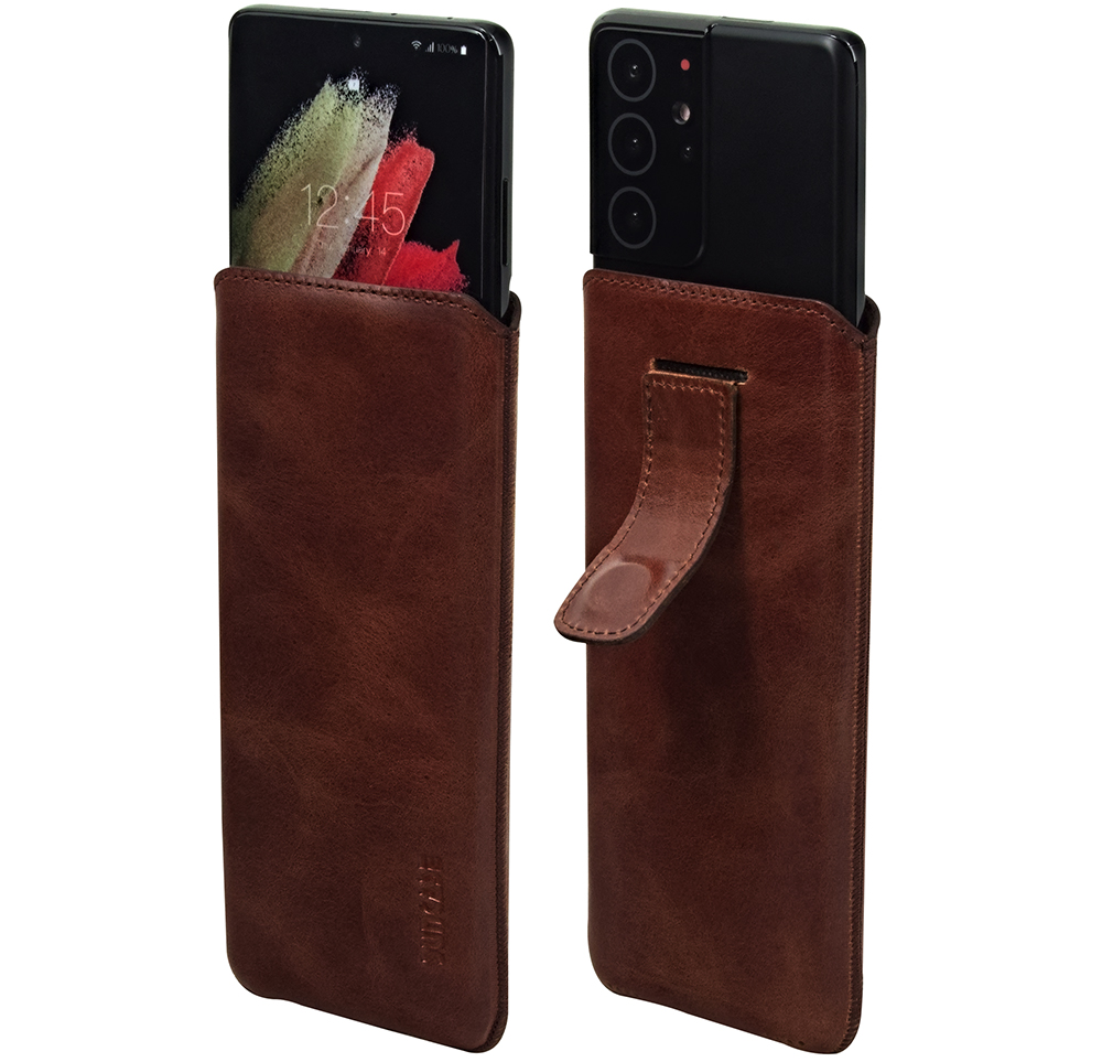 - Mithilfe der Lasche lässt sich das Handy bequem aus der Tasche herausziehen.