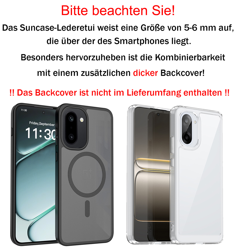 - Passend für das OnePlus 15R 5G (ACHTUNG: Das angebotene Suncase passt nur für das Gerät mit ein Zusätzlicher dickeres Silikon Case/Bumper/Backcover)