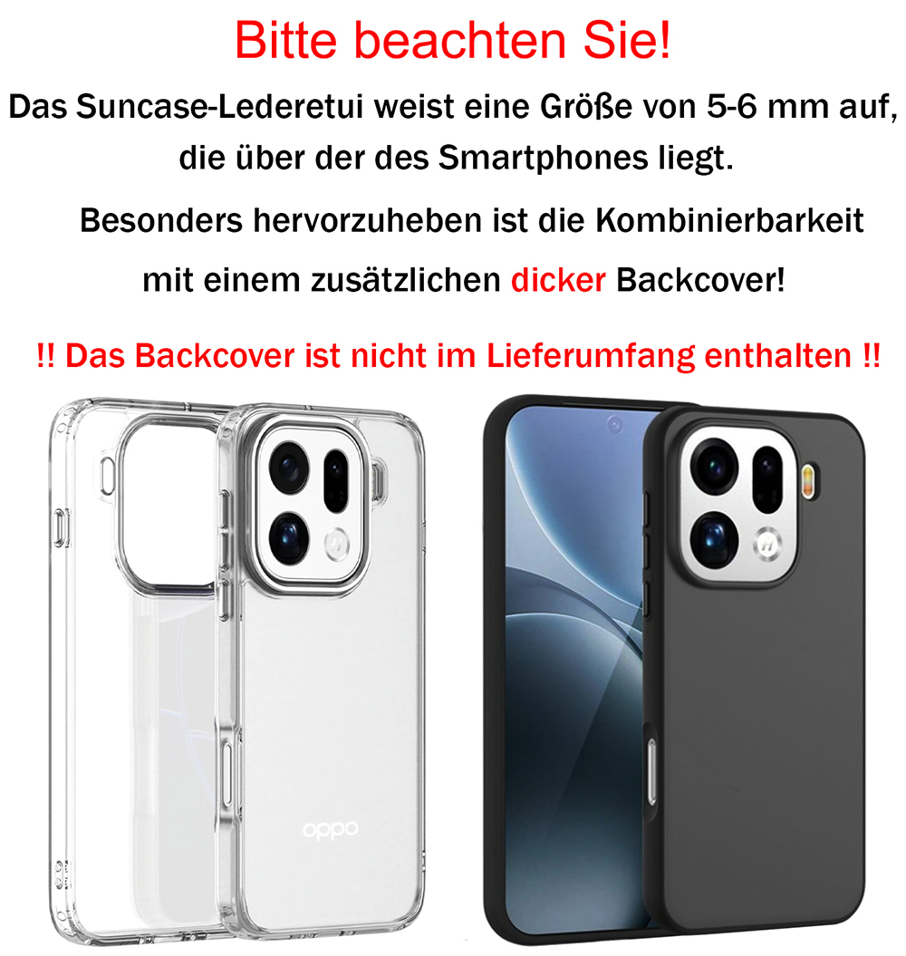 - Passend für das Oppo Find X9 5G (ACHTUNG: Das angebotene Suncase passt nur für das Gerät mit ein Zusätzlicher dickeres Silikon Case/Bumper/Backcover)