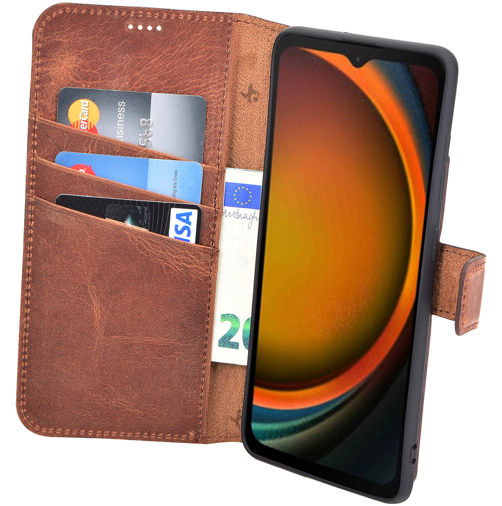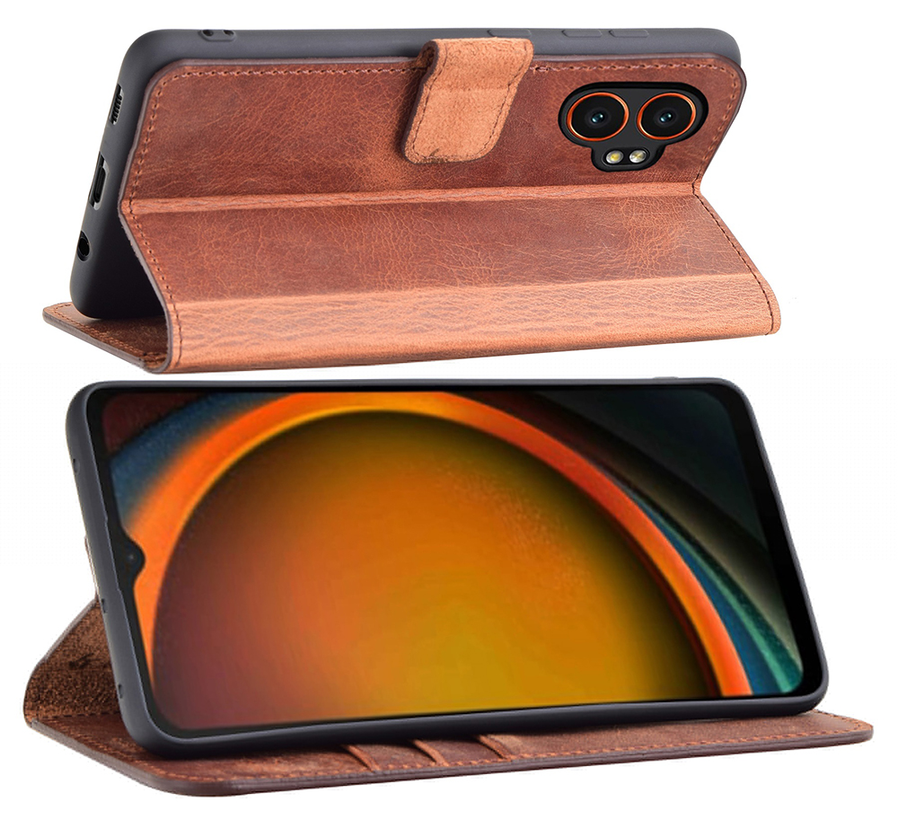 • Diese millimetergenaue, spezielle Ledertasche ist kompatibel mit das Samsung Galaxy XCover 7 Pro (5G) aus langlebigen, robusten ECHTEM Leder angefertigt.