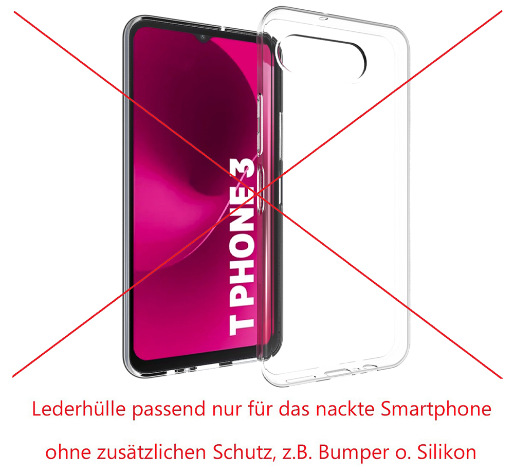 - Beachten Sie bitte darauf, dass dieses Etui auf die exakte größe des T Phone 3 (5G) OHNE Bumper, Silikon oder sonstige Hüllen angepasst ist!