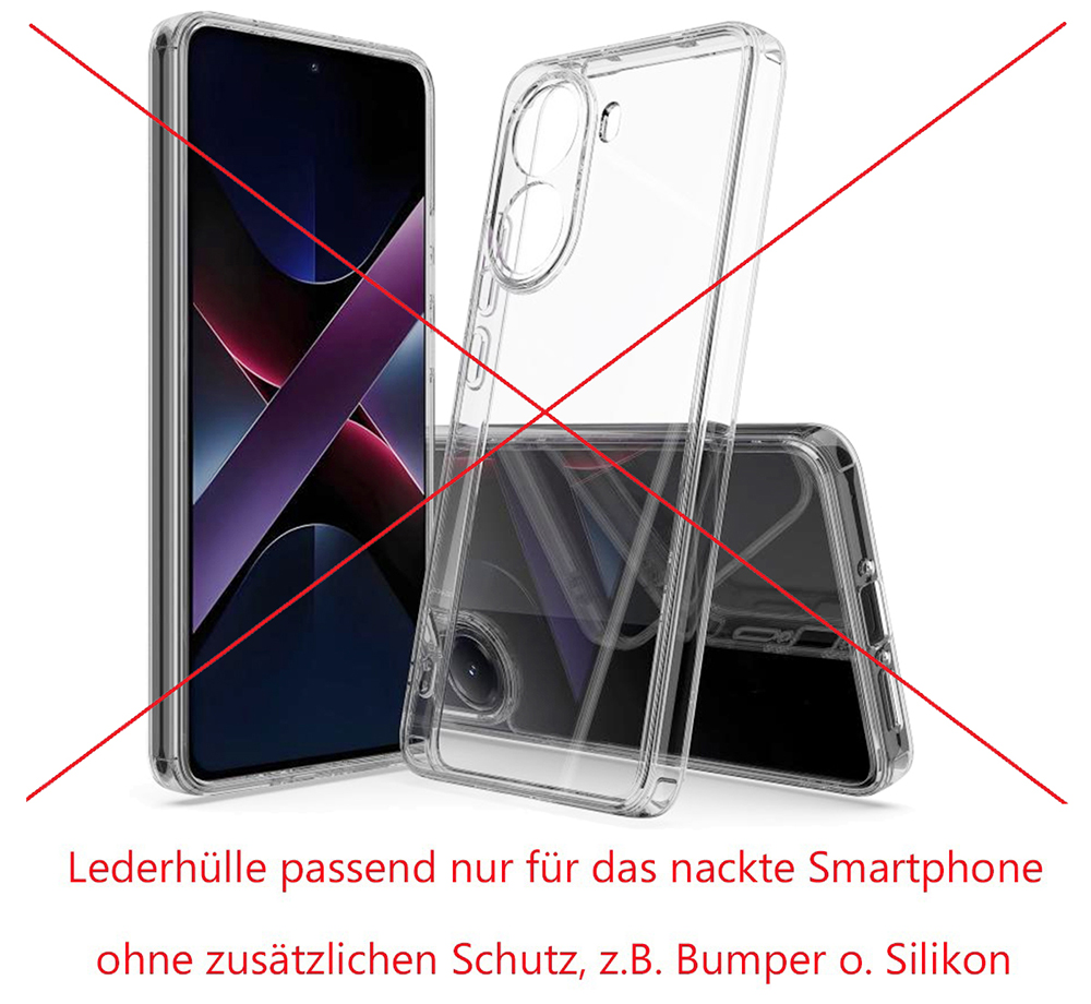 • Beachten Sie bitte darauf, dass dieses Etui auf die exakte größe des Xiaomi POCO X8 Pro OHNE Bumper, Silikon oder sonstige Hüllen angepasst ist!
