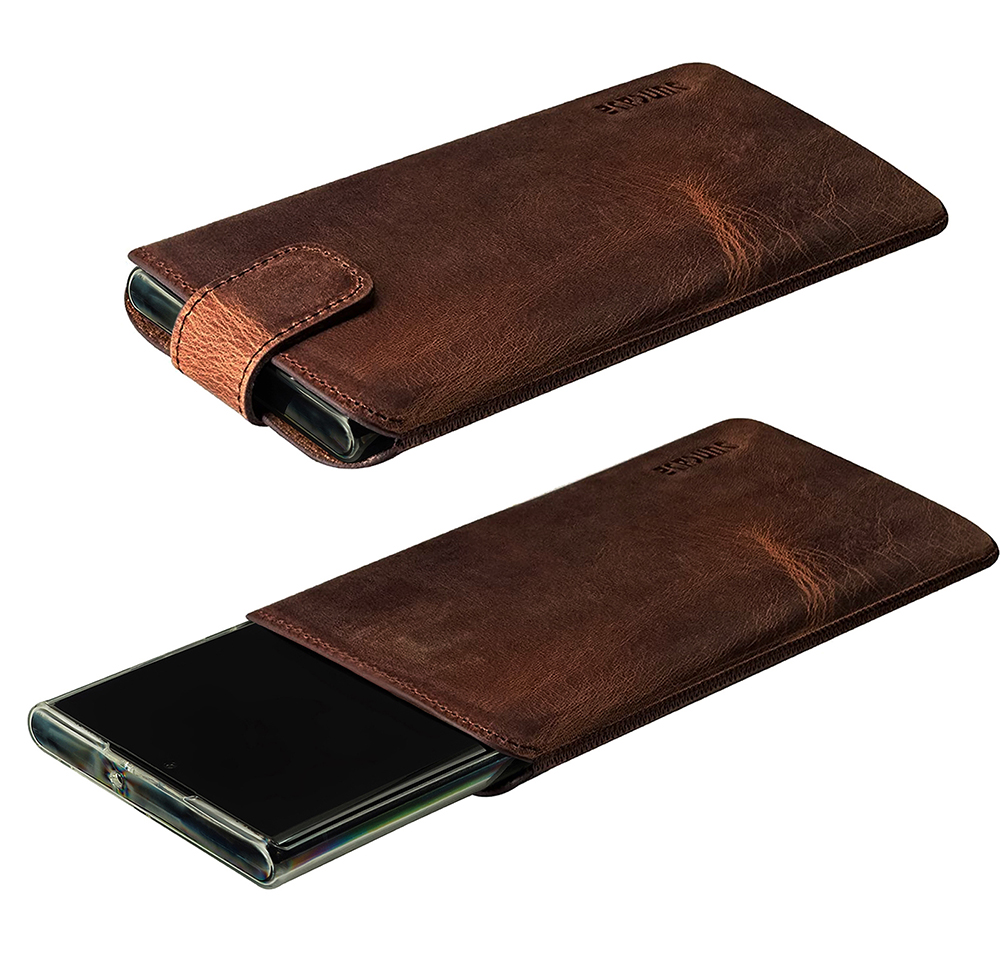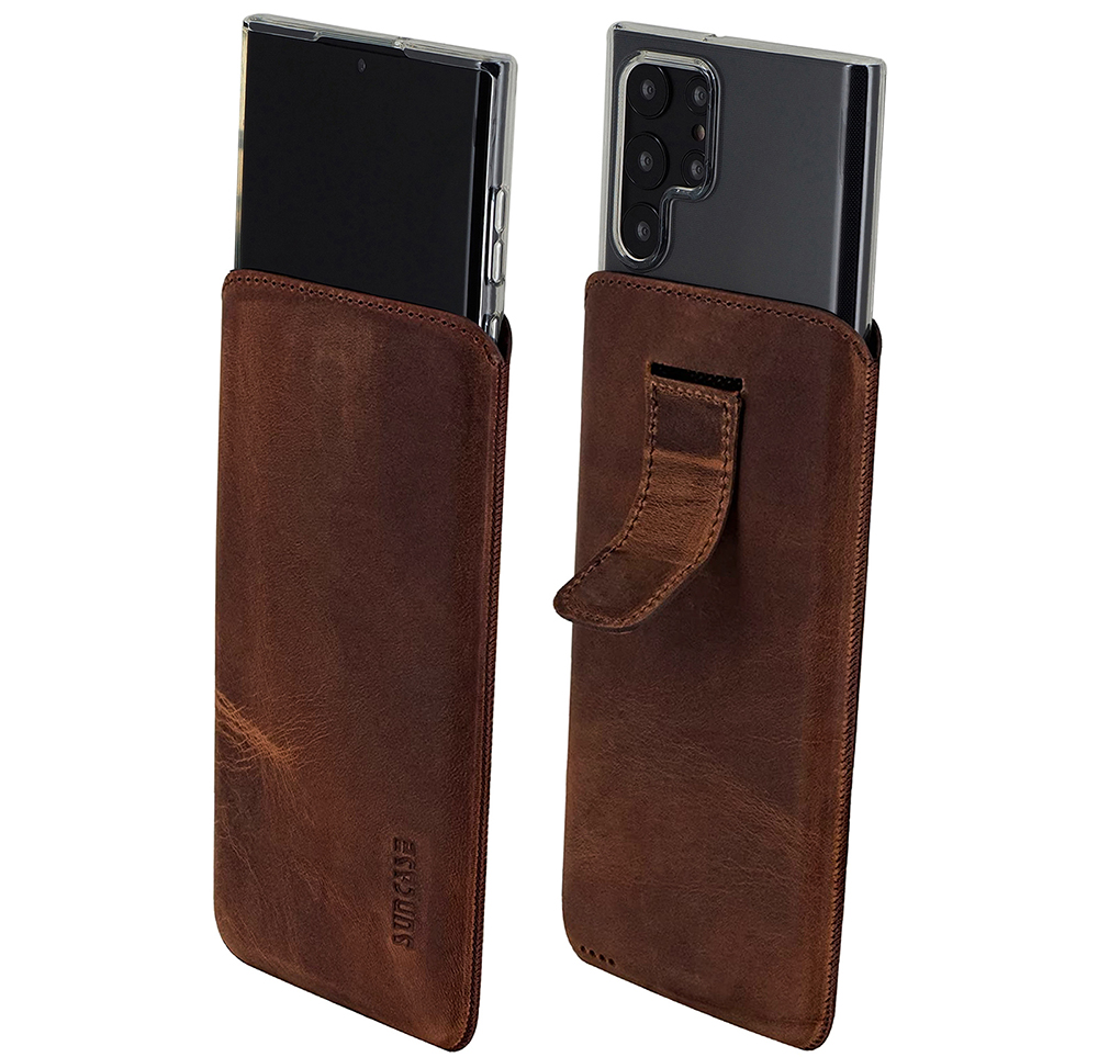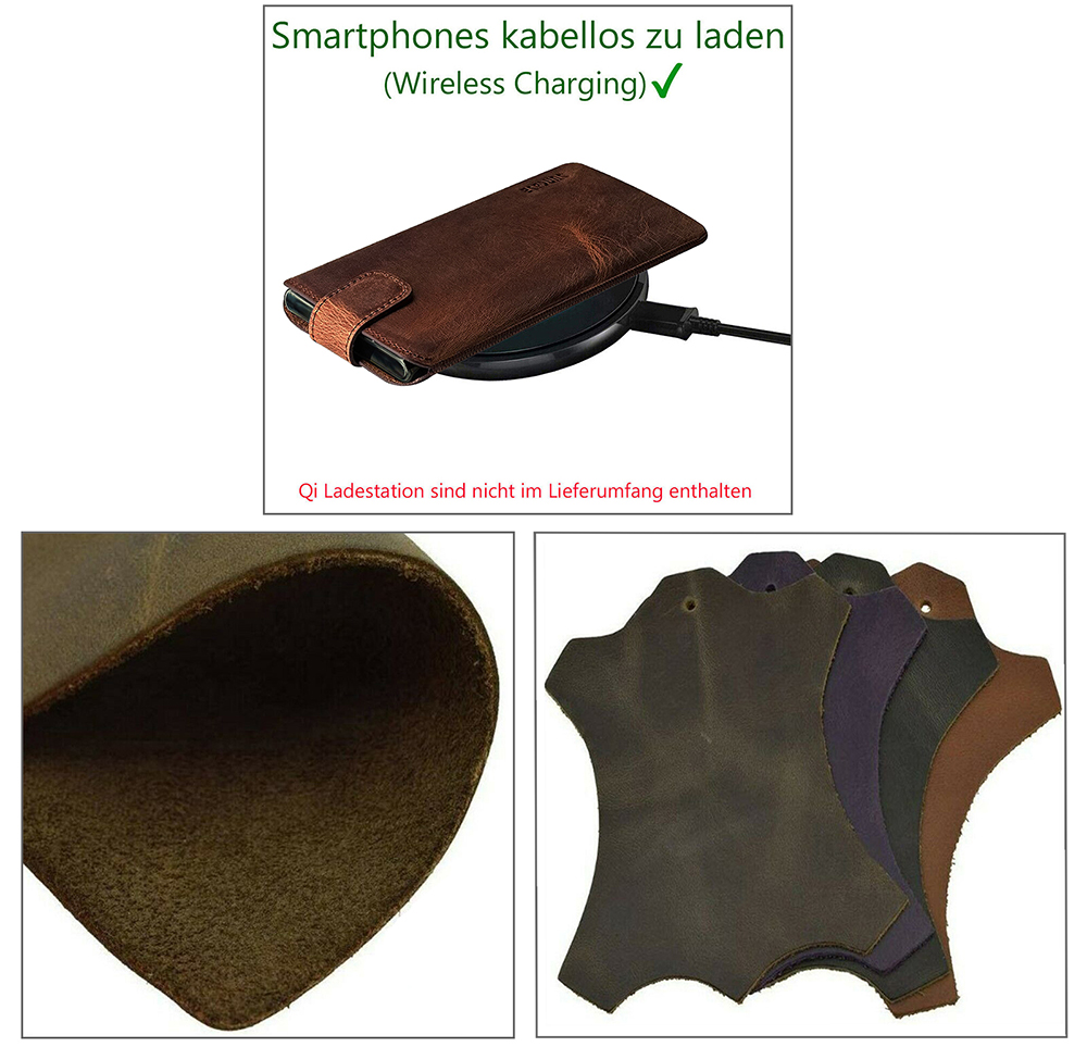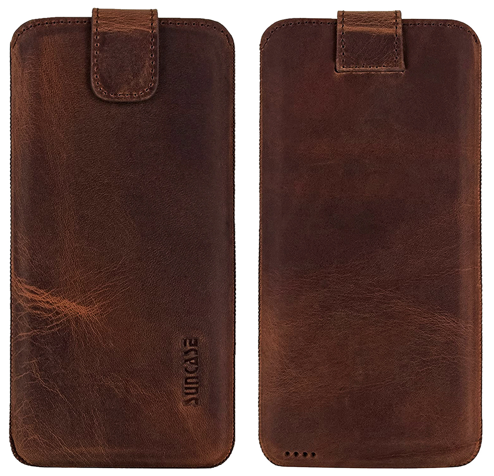 - Suncase ECHT Leder Tasche mit ZUSÄTZLICHER Transparent Hülle | Schale | Silikon Bumper Handytasche (mit Rückzugsfunktion und Magnetverschluss)